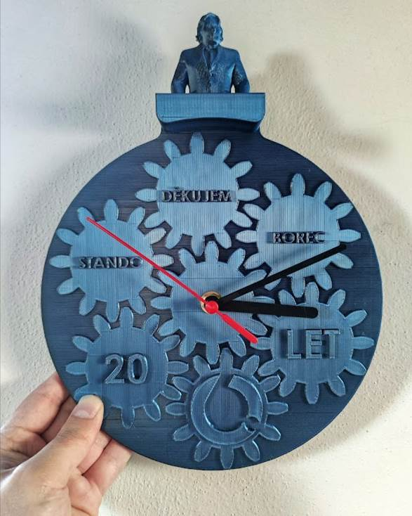 As a thank you for his many years of contribution, his team gave him a custom-made gift – a clock in the company's design with his own sculpture and original wishes, made directly by us.